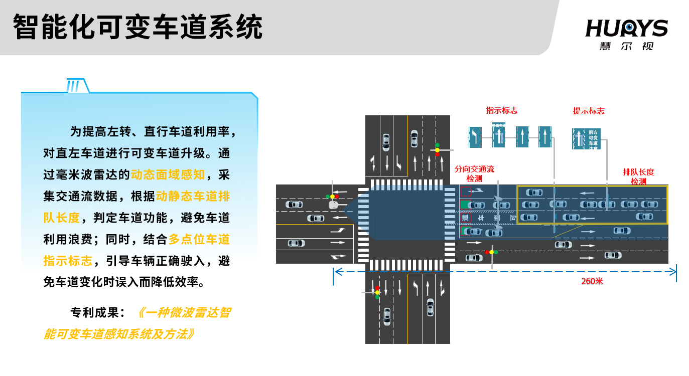 系統(tǒng)基于廣域毫米波雷達(dá)全天候、車(chē)道級(jí)交通流運(yùn)行實(shí)測(cè)數(shù)據(jù),依托邊緣計(jì)算端智能算法自主研判車(chē)道交通需求特征,實(shí)現(xiàn)可變車(chē)道的自適應(yīng)控制,動(dòng)態(tài)調(diào)整車(chē)道配置以適應(yīng)交通需求,提高車(chē)輛的通行效率,同時(shí)克服傳統(tǒng)以人工經(jīng)驗(yàn)為主導(dǎo)的控制模式下在可變車(chē)道控制效率和控制水平方面存在的缺陷。