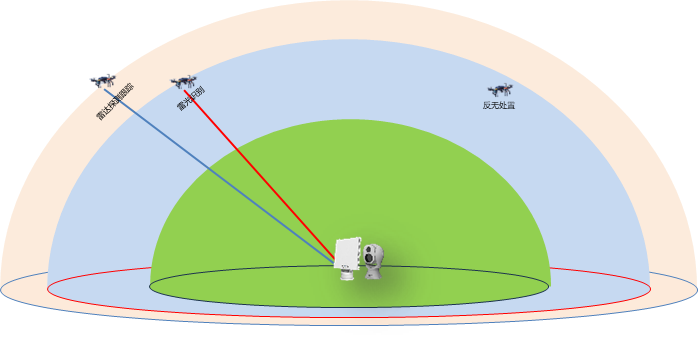系統(tǒng)雷達(dá)探測(cè)區(qū)、雷光識(shí)別區(qū)、處置作業(yè)區(qū),皆遠(yuǎn)大于核心保護(hù)區(qū),且監(jiān)測(cè)盲區(qū)小,確保核心區(qū)安全。